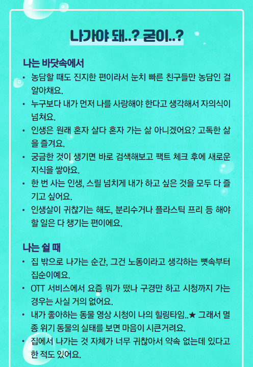바닷속에 있을 때 / 쉴 때 / 스트레스받을 때를