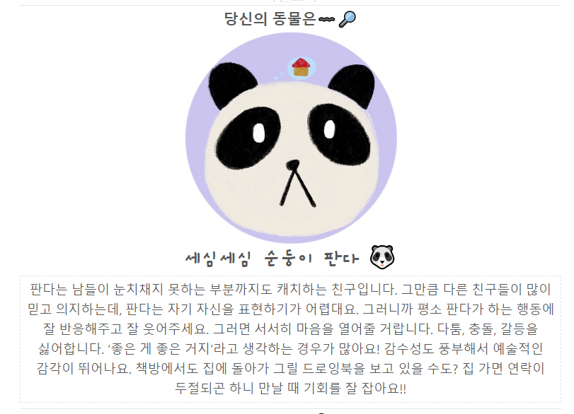 귀여운 판다는 좋지만, 성격은 저랑 안 맞는 거 같기도 하고