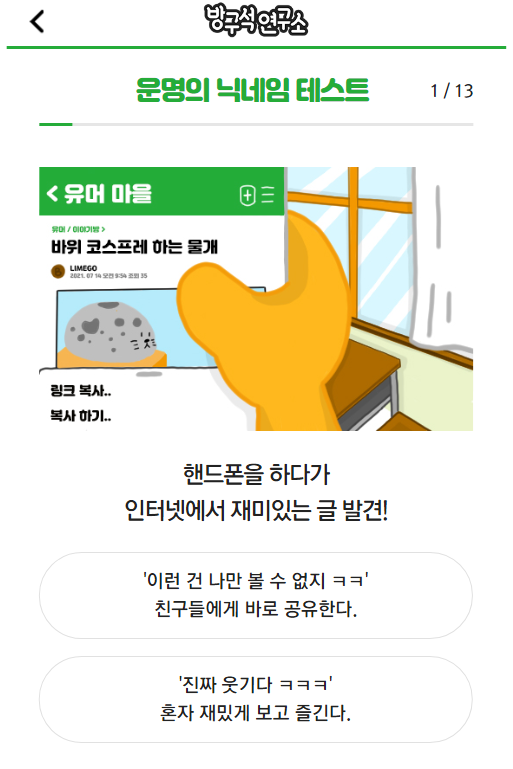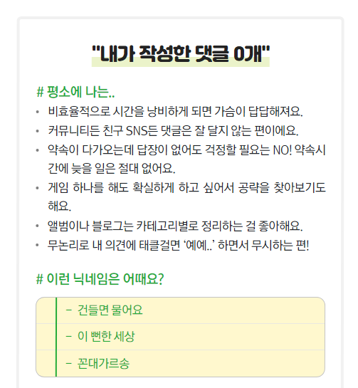 오늘은 자신의 운명 닉네임을 알아보는 테스트를 가져왔어요