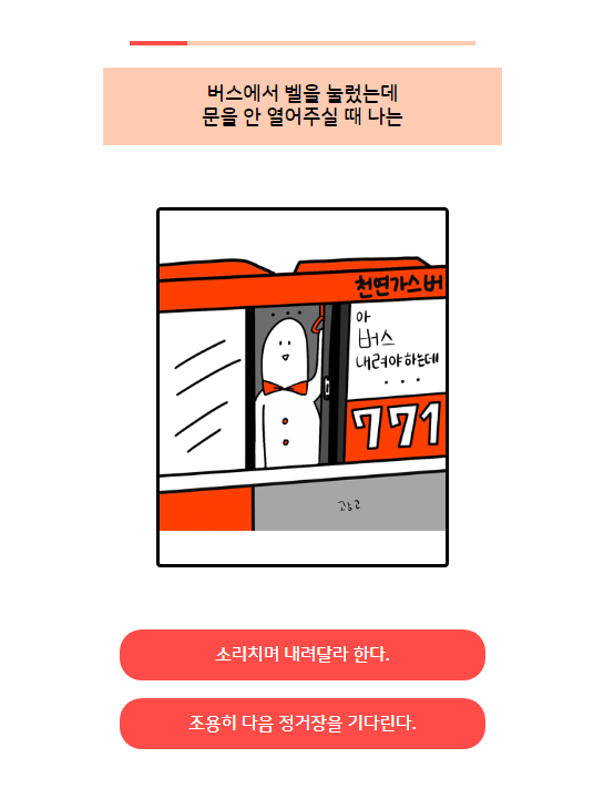 MBTI테스트답게 성격을 파악할 수 있는 상황 문답이에요