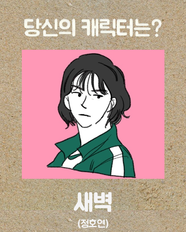 바로 자신이 오징어게임의 어떤 캐릭터랑 비슷한지를 알아보는 흥미 테스트예요