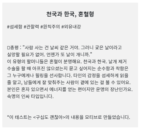 소재가 신박하고 문항수가 짧아서 괜찮은 심리테스트 같아요!!