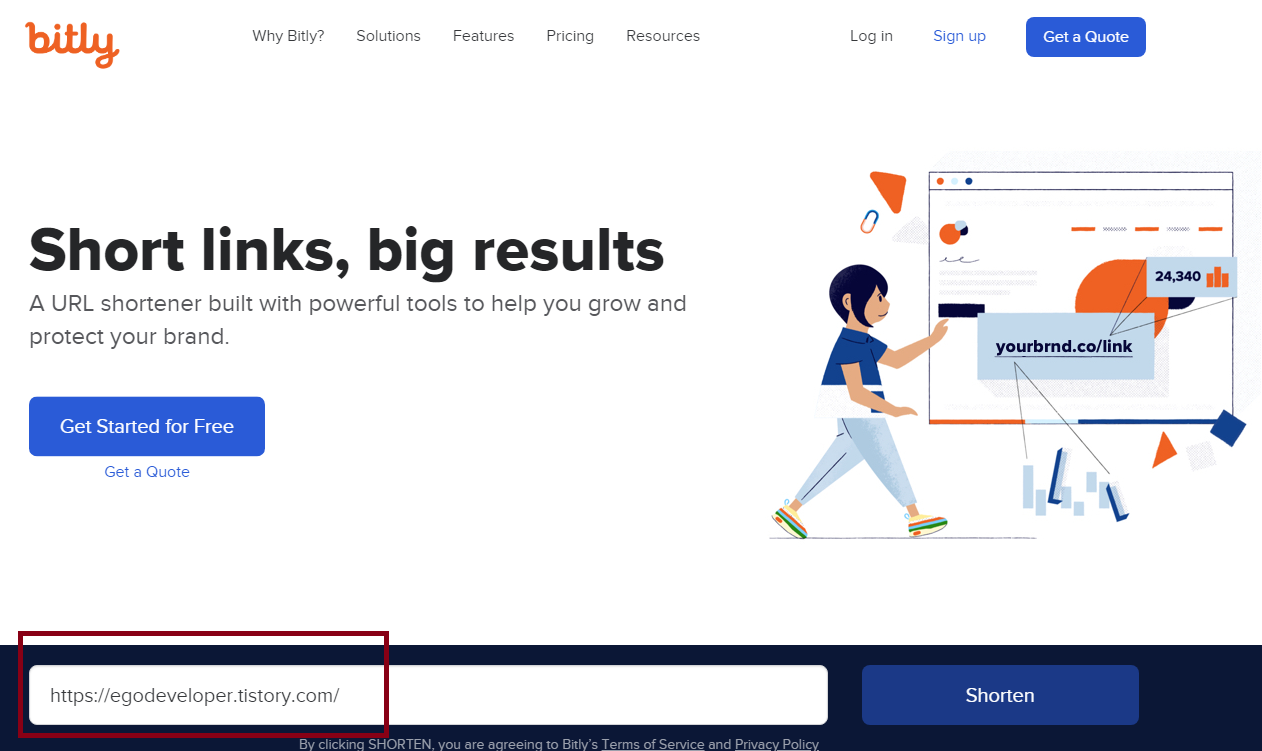 변환하고자 하는 주소 링크를 입력 - Shorten 클릭