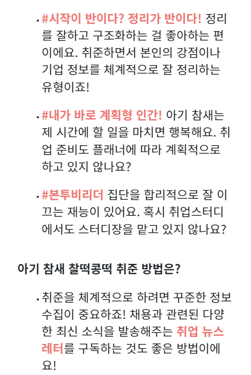 아기동물로 나에게 맞는 취준 법을 알아보는 테스트는