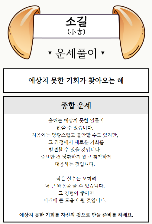 포춘쿠키를 뽑아서 올해의 종합운세와