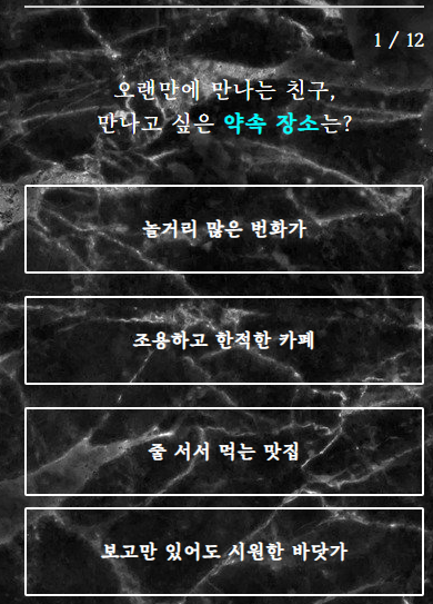 성격을 유추할 수 있는 12가지 문항에 답을 하면