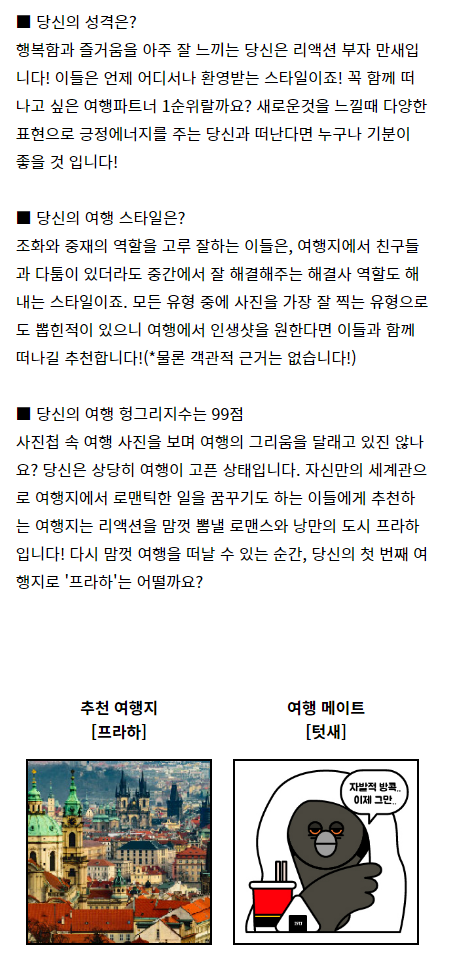 해당 테스트는 MBTI 성격유형부터 여행 스타일을 기반으로
