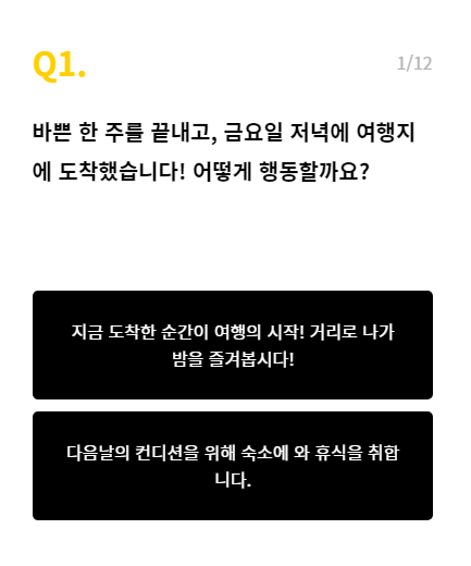 테스트는 여행과 관련된 12가지 문항으로