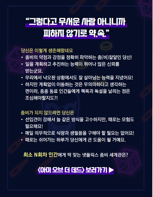 자신의 생존방법과 좀비가 되지 않는 방법까지 제시해줍니다