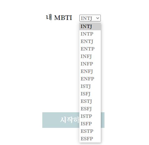 자신의 MBTI 유형을 먼저 선택해줍니다