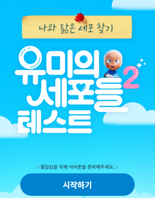[나와 닮은 유미 세포는?]이성세포, 감성세포, 출출세포 ...내 성격을 닮은 유미의 세포는 뭘까? 🤔내 결과가 궁금하다면..?테스트해보고 유미의 세포들 시즌2 보러 가자! ❤