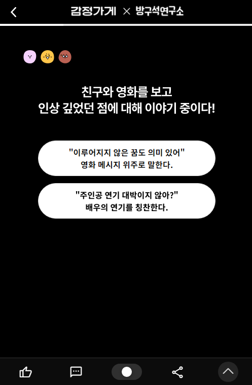 상황에 대한 두 가지 답변 택으로 구성되어 있습니다